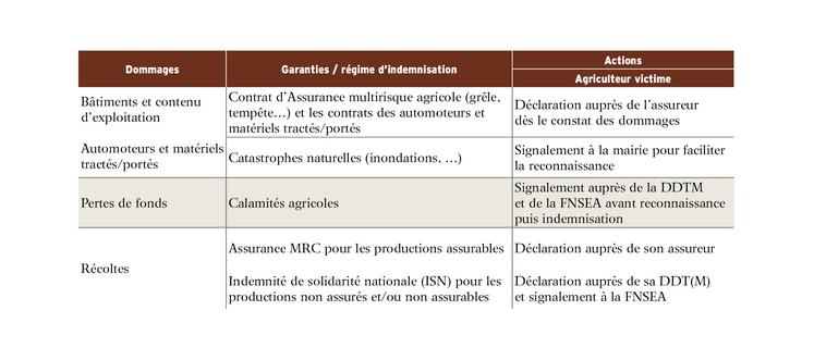 Dans tous les cas, il est important que l'agriculteur touché puisse informer la FNSEA afin qu'une action collective soit menée auprès de la DDTM permettant de faire reconnaître l'aléa sur le département ou une partie du département et de fixer les éventuels taux de perte non imputable à un aléa climatique. Cette démarche facilitera également la reconnaissance du sinistre par l'interlocuteur agréé.