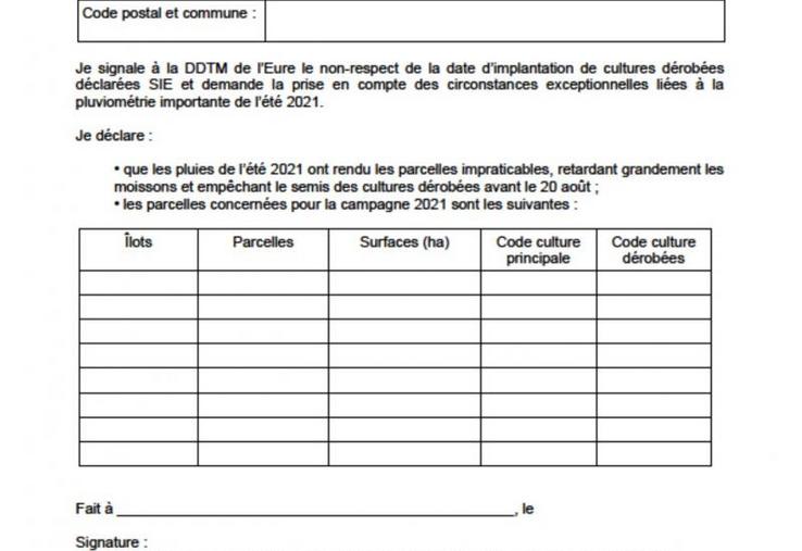 Dérogation à la date d'implantation des cultures dérobées déclarées en SIE.
