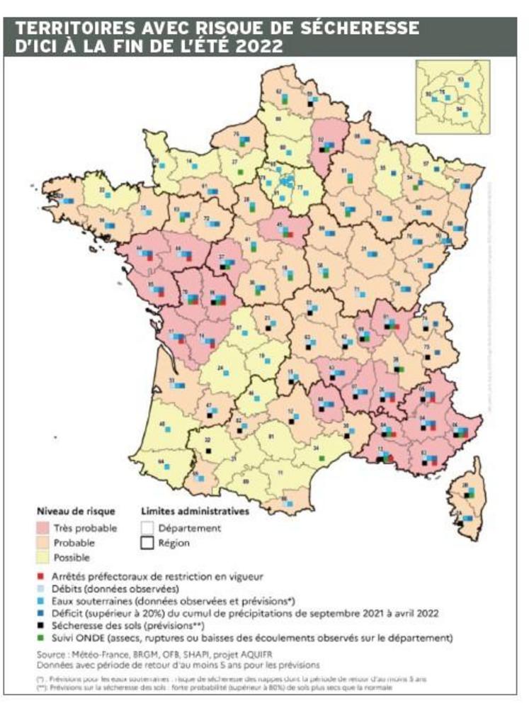 Compte tenu de la faiblesse constatée de la ressource en eau en ce début de printemps, conjuguée à une situation prévisible de sécheresse, le département pourrait est placé d'ici fin juin 2022 en vigilance sécheresse. Ce dispositif n'impose pas de restriction, mais permet le déclenchement d'une campagne de sensibilisation et d'information afin d'inciter la population à limiter ses usages en eau.